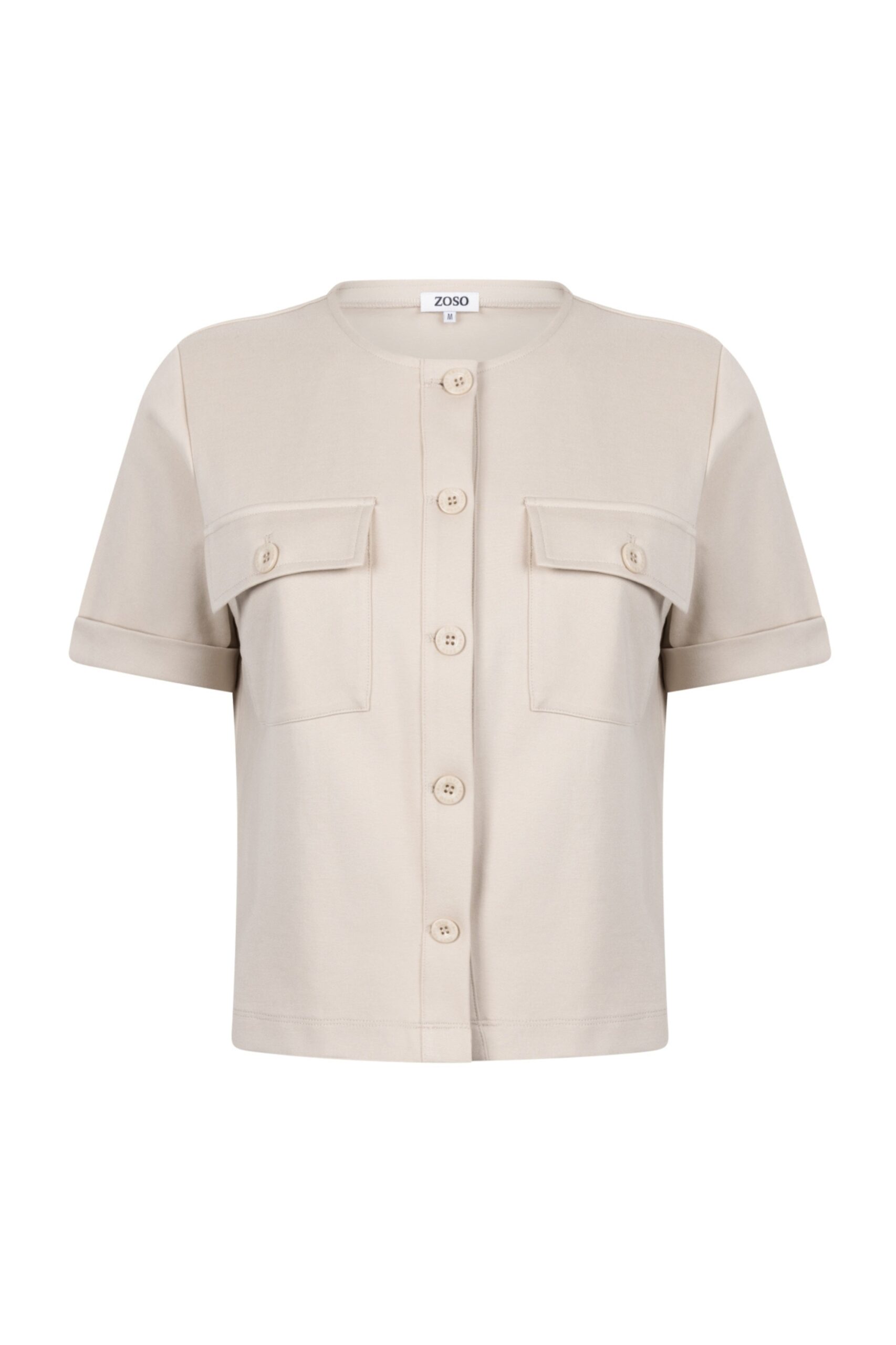 • Button closure — clean, simple front