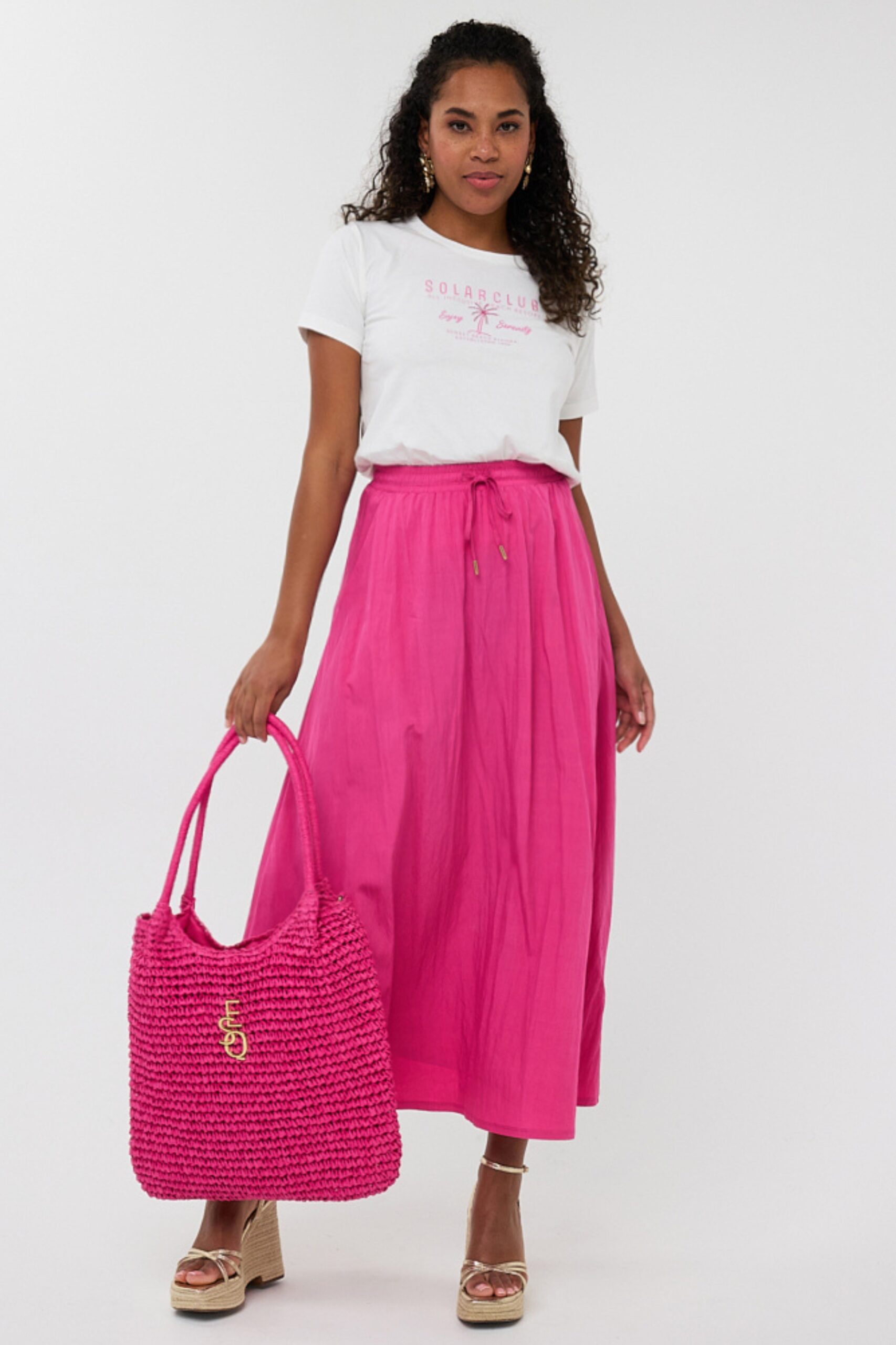This EsQualo tas mixes a woven paper look with wearable detailing. The body uses a paper blend for texture and a light hand. Small PU reinforcement keeps edges neat and durable. The strap and lining use polyester for strength and comfort. The bag shows a braided, gevlochten look that gives it summer energy and tactile interest. It includes two short handles and a removable shoulder strap. The shoulder strap carries an EsQualo logo for a branded finish. The EsQualo logo also appears on the bag body for clear brand identity. The size and shape suit daily errands and light travel. It sits comfortably at your side and holds essentials without bulk. The fit reads as normal, so expect standard proportions. lafi lists full materials and features for clear Google Shopping feeds and to help customers buy with confidence.